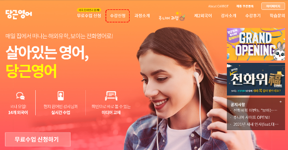 1. 당근영어 홈페이지 -> 수강신청 탭 클릭!