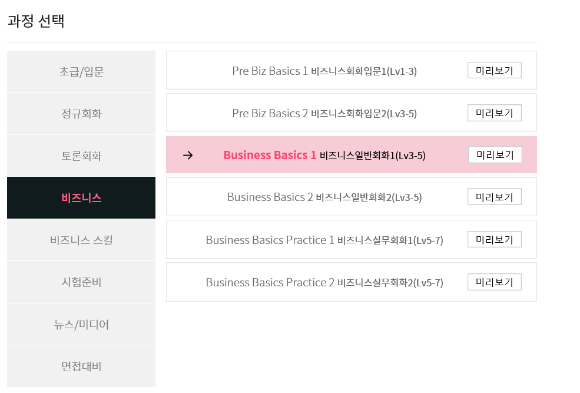 * 레벨테스트 결과를 받을 때, 테스트했던 미국 강사님의 "추천 과정"으로 선택!
