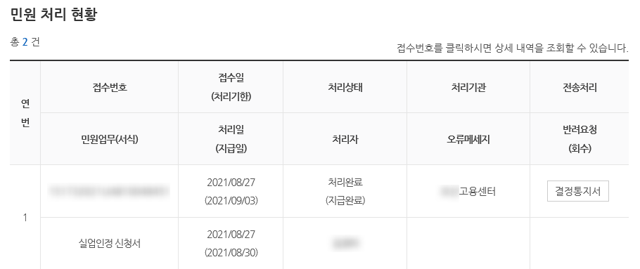 2주 이내 미수령시에는 고용센터에 방문하여 수령하여야 하기 때문에 꼭 잘 챙기셔야해요.