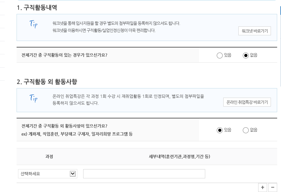 1차 실업인정일에는 구직활동내역이 없기 때문에 구직활동 외 활동상황에 있음을 체크하신 뒤 해당되는 사항을 기재하시면 돼요.