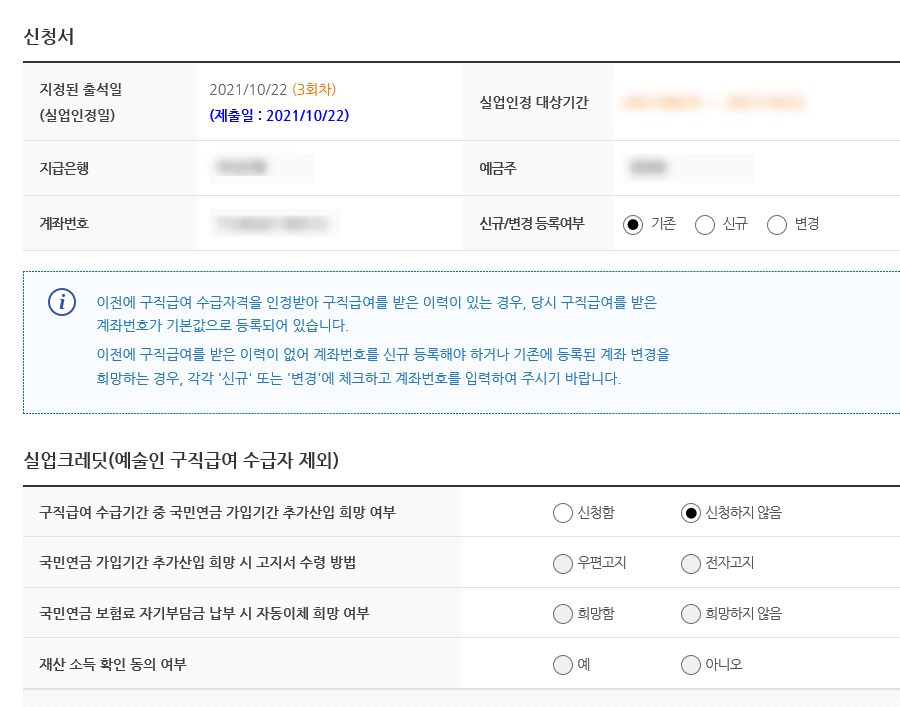 고용보험 사이트에서 실업인정 인터넷 신청서 클릭하신 뒤 신청서 작성하시면 돼요. 3회차가 되니 신청서 작성 시 이전과 동일하게 진행하면 되어 조금 수월했어요.