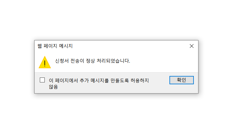 위와 같이 미리 임시 저장을 해 놓은 뒤 실업인정일 당일에 제출을 하면 신청서 전송이 정상 처리되었다는 메시지가 나타나요.