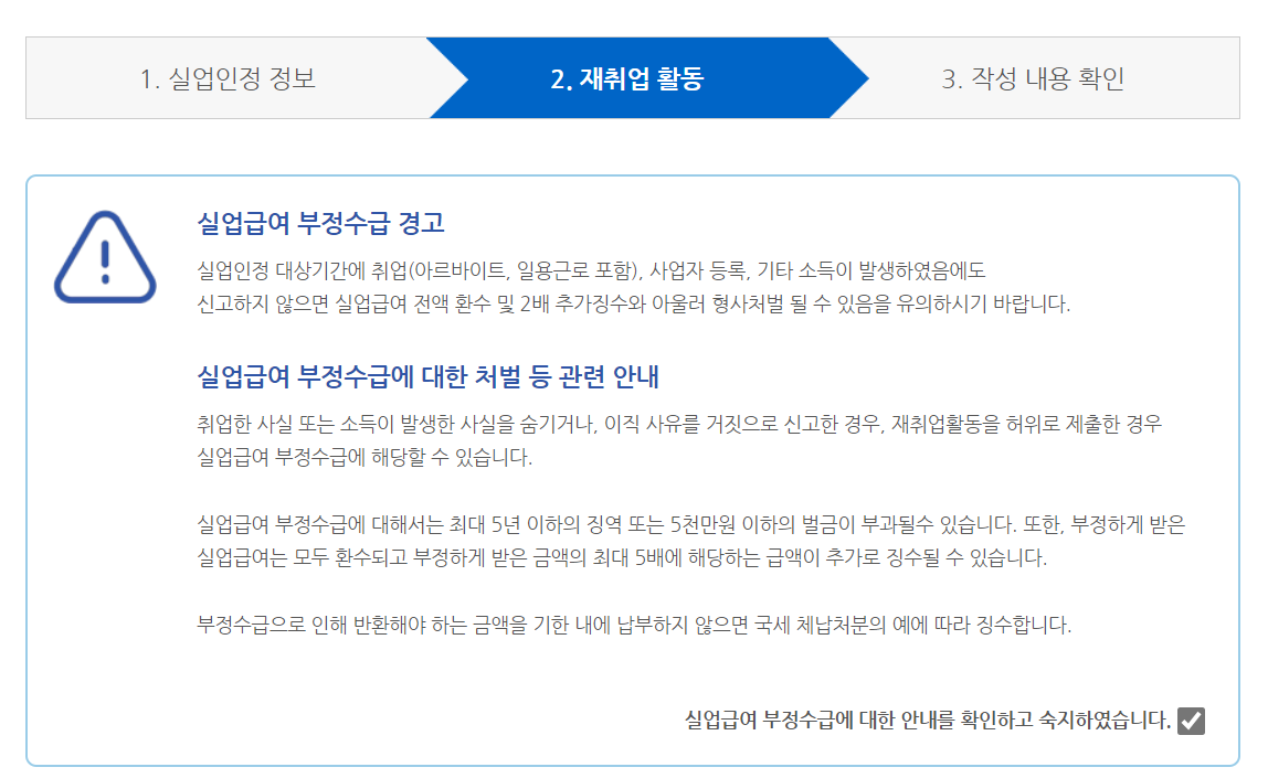 1) 실업인정정보: