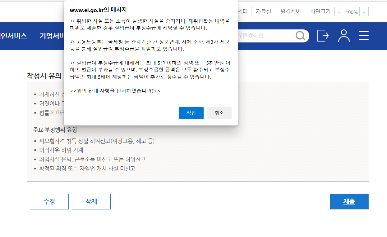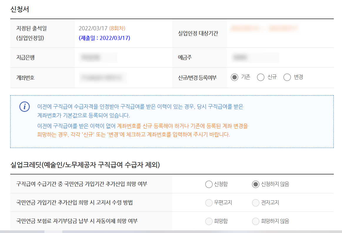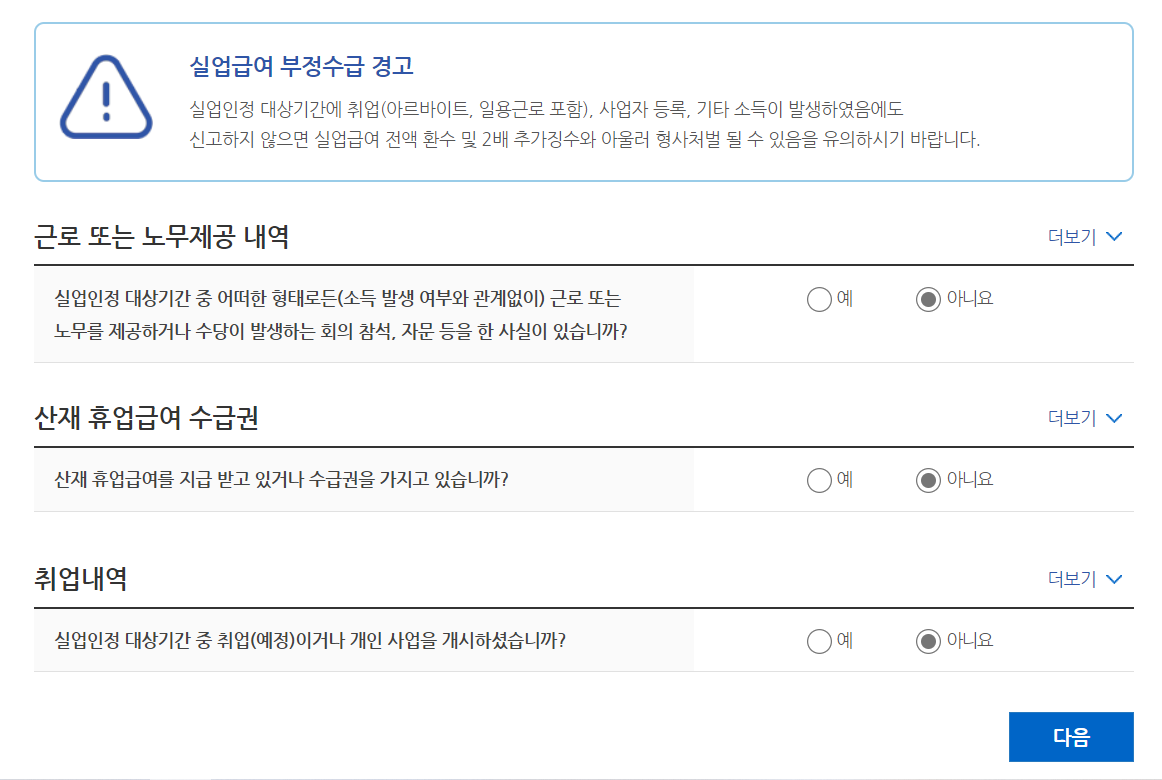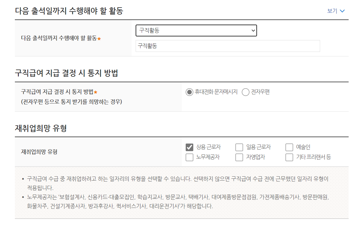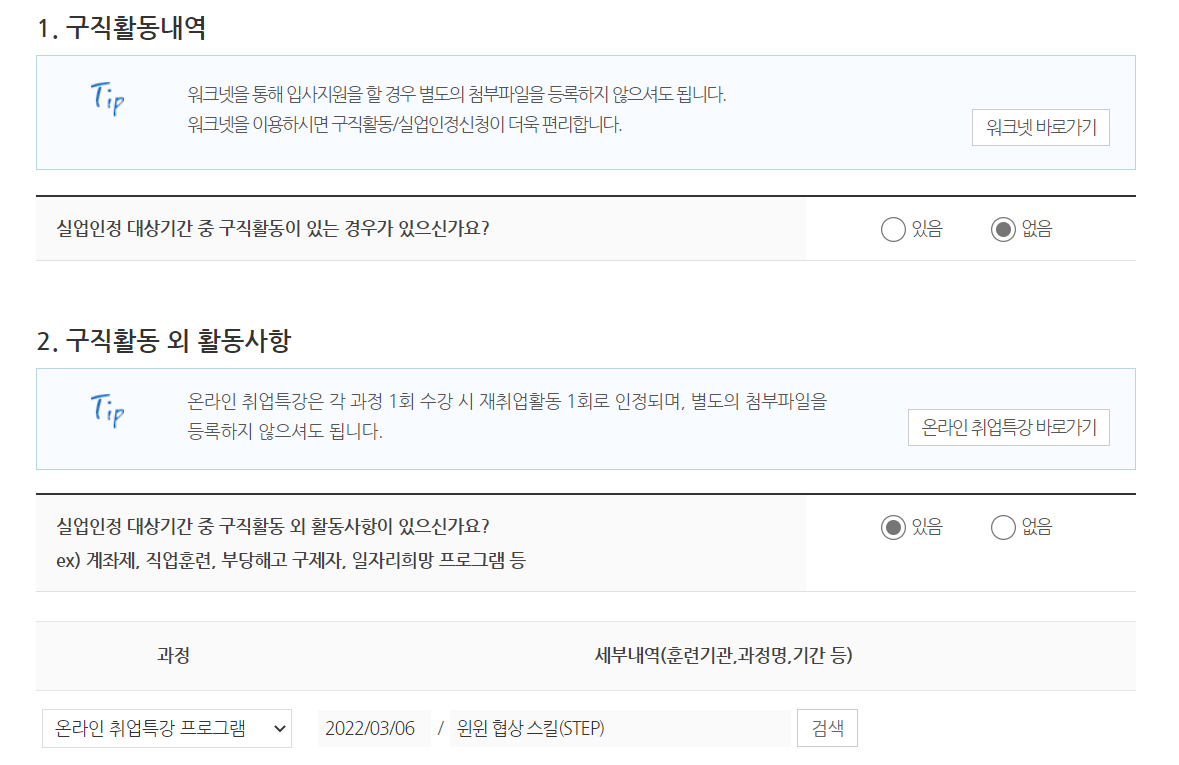 1) 실업인정정보: 신청서 작성은 기존에 하셨던 대로 동일하게 하시면 돼요.