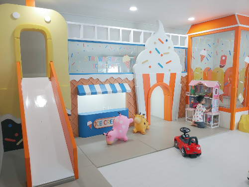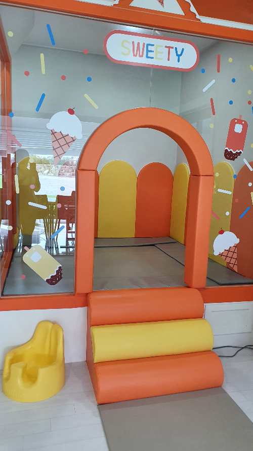 삐삐 키즈 풀빌라 내부예요. 아이스크림방 이름 그대로 아이스크림 콘셉트로 꾸며져 있었어요. 내부로 들어서자마자 즐거워하는 아이들! 오픈한 지 몇 달 안 돼서 그런지 깔끔했어요. 한쪽은 미끄럼틀과 트램펄린으로 아이들이 좋아할 만한 것으로 되어있어요.