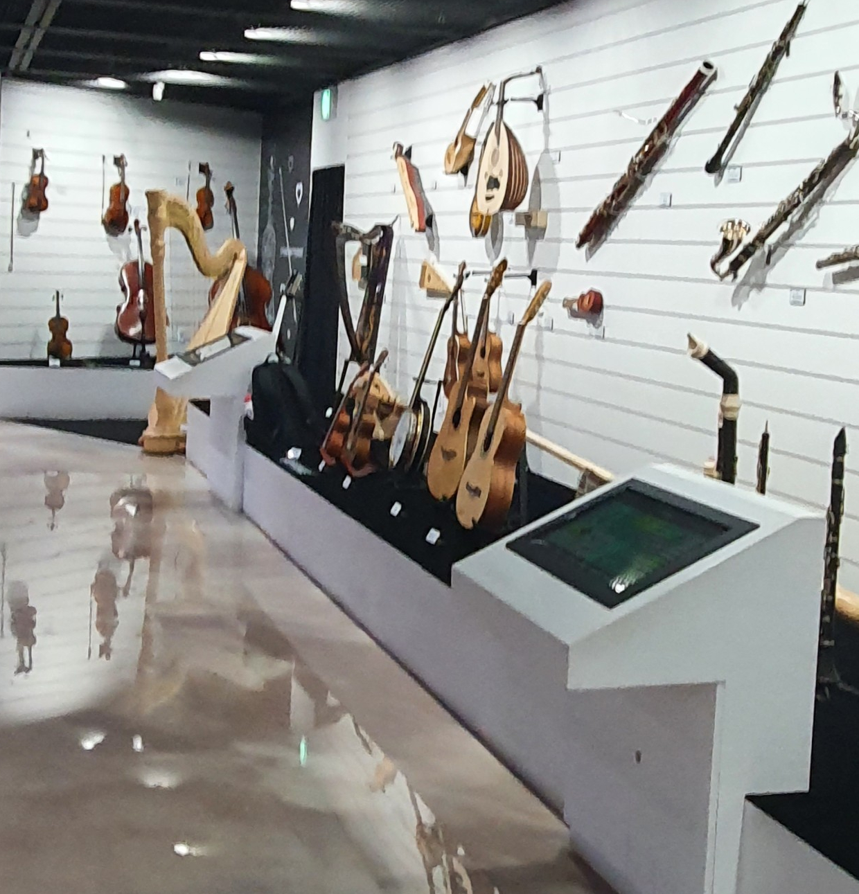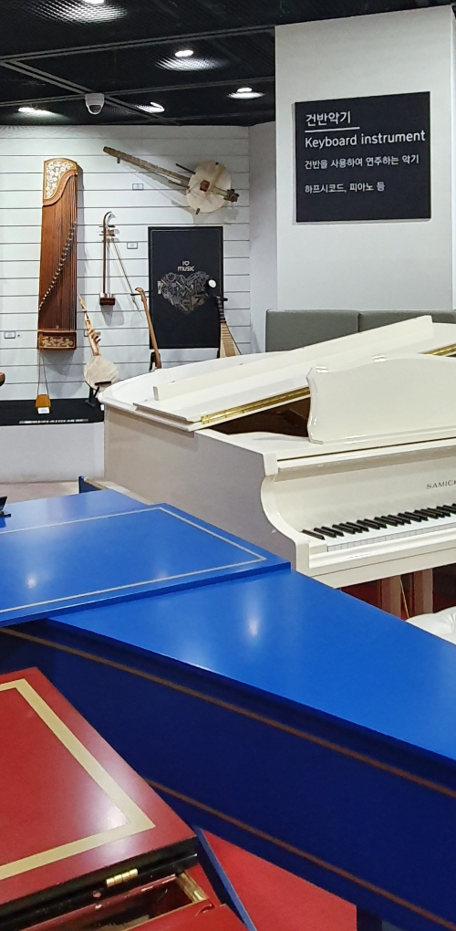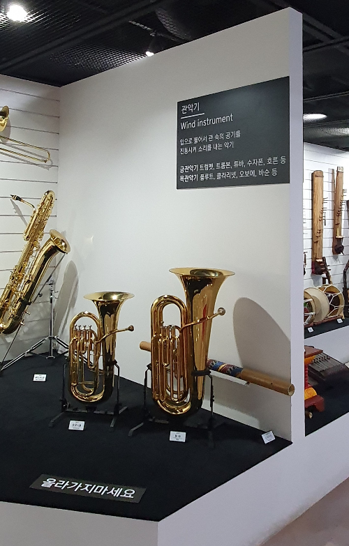 건반악기, 관악기, 현악기, 타악기 등 종류도 많아요. 여러 악기들을 직접 체험하고 소리를 들어볼 수 있어요.