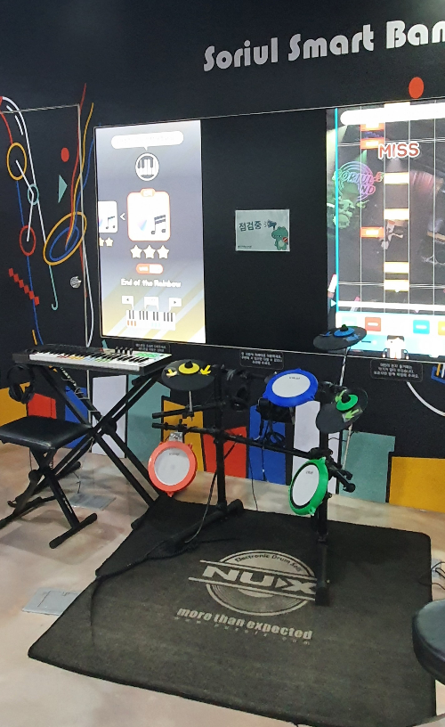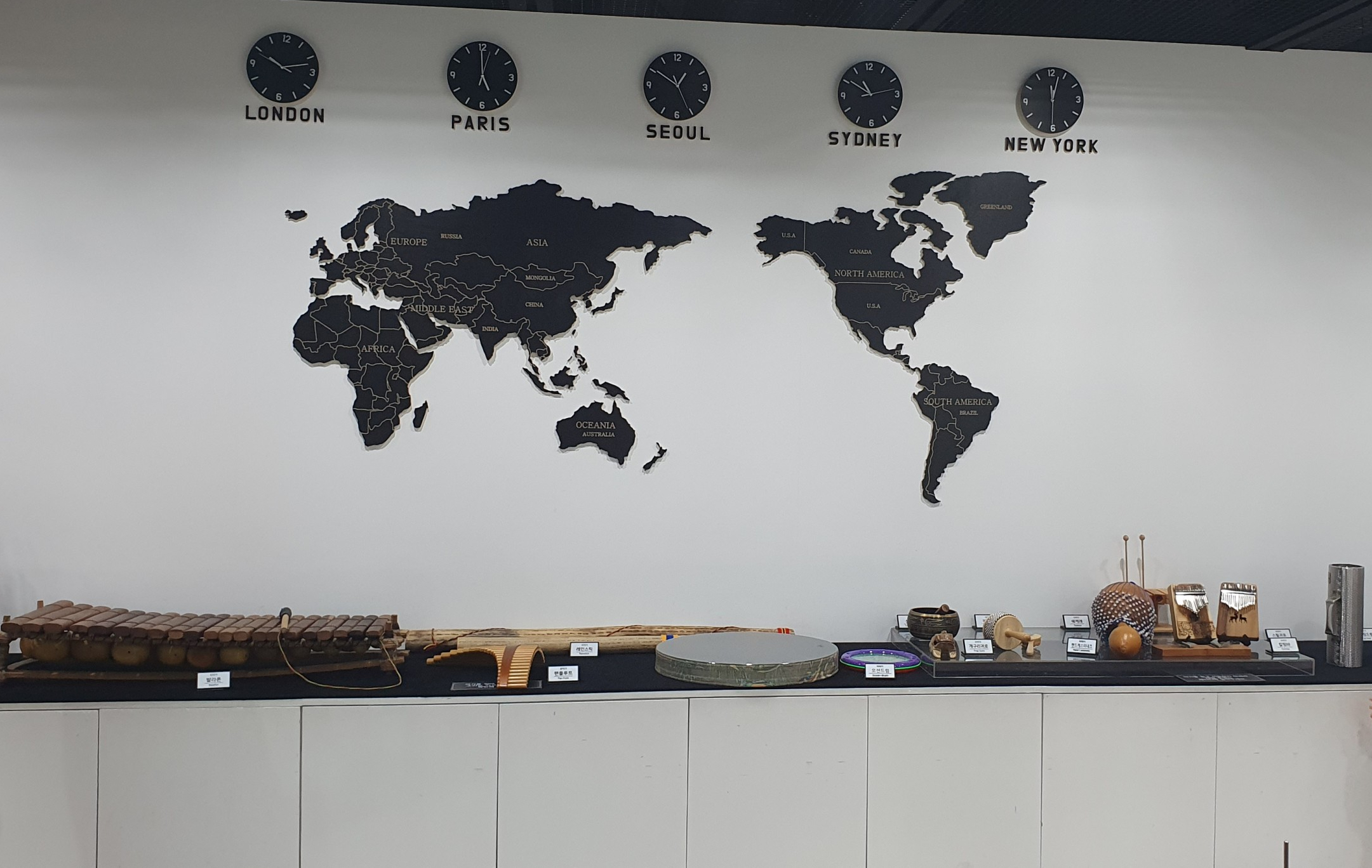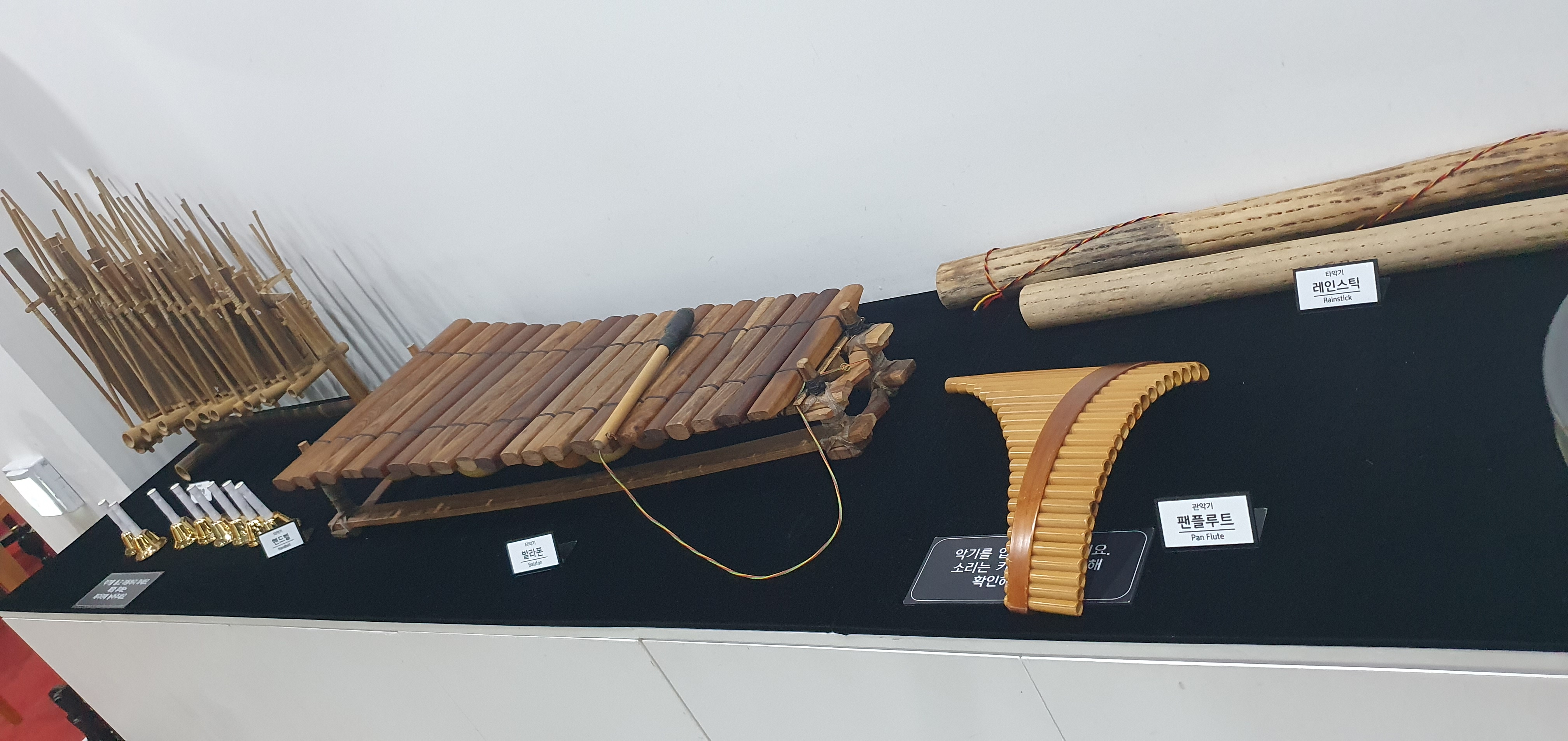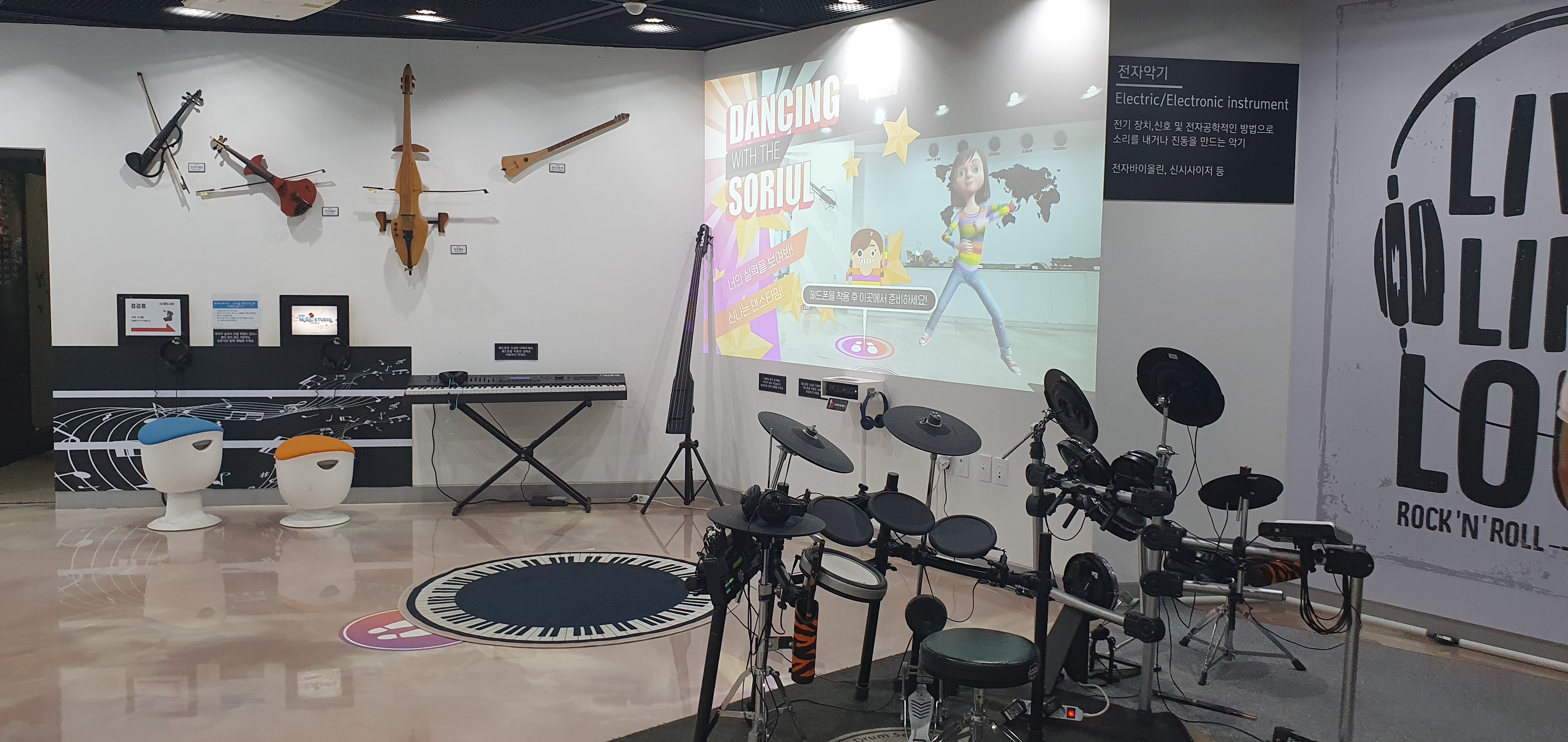 소리울도서관 악기 전시체험관은 지하 1층에 있어요. 지하 1층에는 악기 대여관&도서대출 반납하는 곳도 같이 있어요. 악기를 대여할 수도 있다고 하네요. 악기 전시 체험관에 입장하니 정말 다양한 악기들이 전시되어 있었어요. 무엇보다도 좋은 점은 대부분의 악기를 직접 연주해 보며 체험할 수 있다는 거예요. 피아노를 연주하는 아이들도 있고 드럼을 치는 아이들도 있었고, 아이들이 마음껏 체험할 수 있었어요.