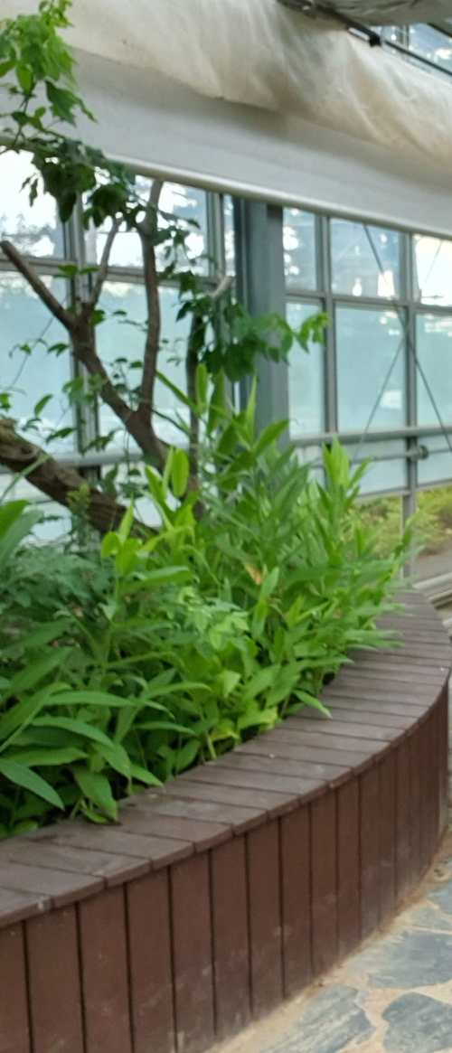 전시온실은 난대 식물이 있는 유리온실이에요. 황칠나무, 시로미 등 50종 1400여 그루의 식물들과 천장의 행잉 플랜트를 입체적으로 관람할 수 있어요.