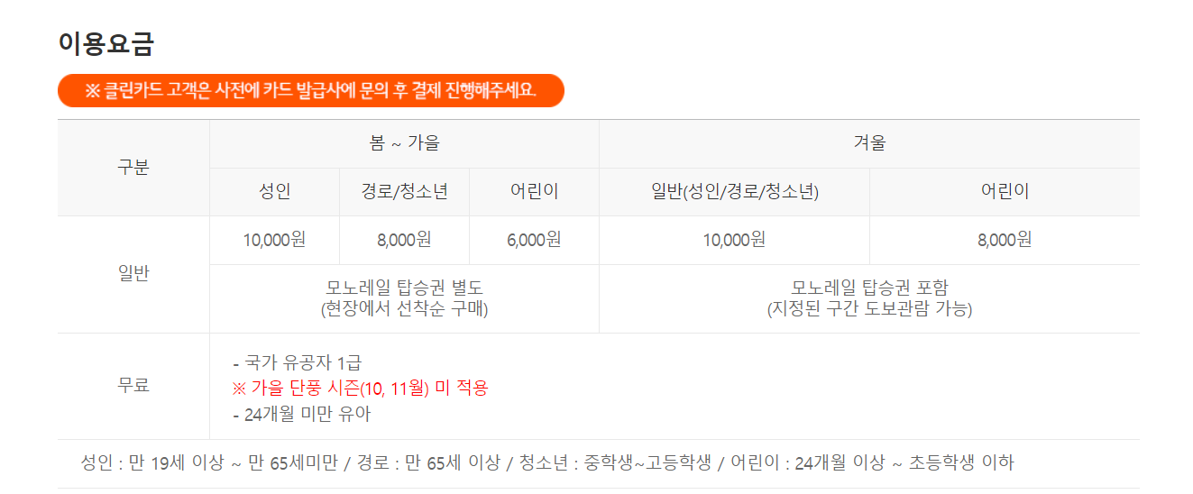 모노레일은 매표소 및 탑승장 자동발권기에서 선착순으로 발권하고 있어요. 수량은 정해져 있고, 현장 발급이라서 주말이나 공휴일의 경우에는 매진일 때가 많더라고요.