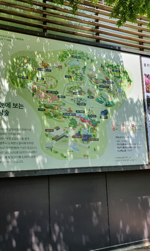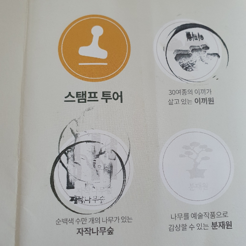 계절에 따라서 주요 테마원이 바뀌어요. 저희는 5월에 다녀왔는데, 봄 주요 테마원은 철쭉, 진달래 길, 자작나무 숲, 암석 하경정원, 탐매원이었어요. 여름 주요 테마원은 이끼원, 분재원, 소나무 정원, 수국원이에요. 화담숲 여름의 주인공은 수국이라고 하네요. 도보로 모든 곳을 관람하려면 많은 시간이 소요되어 저희는 갈 곳을 정한 뒤 그곳만 여유 있게 구경하고 왔어요. 이끼원과 자작나무 숲 두 곳을 정한 뒤 스탬프 투어를 했어요. 관람로를 걷다 보면 스탬프함이 있는데, 스탬프를 찍으면 돼요. 아이들이 흥미로워해요.
