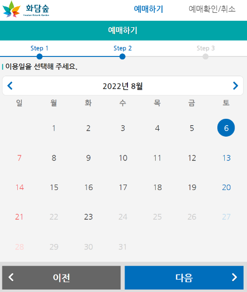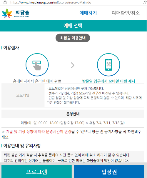 화담숲 - 온라인 예약 방법