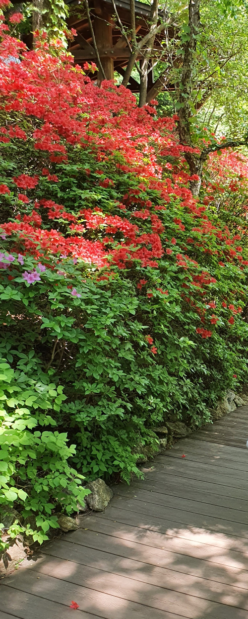 울창한 나무와 함께 색감 예쁜 꽃들도 많아요. 풍경이 좋아요.