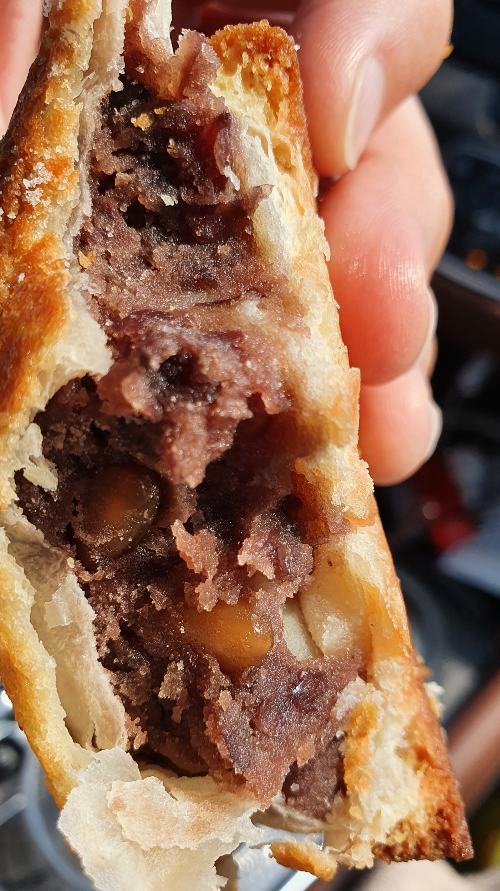 피자빵은 사각의 모양으로 꽤 컸어요. 보통 피자빵 먹으면 간이 센 경우가 많은데 이곳의 피자빵은 짜지 않고 먹기 적당했어요. 그런데 빵 끝부분에 여기저기 탄 부분이 있어서 조금 아쉬웠네요.
