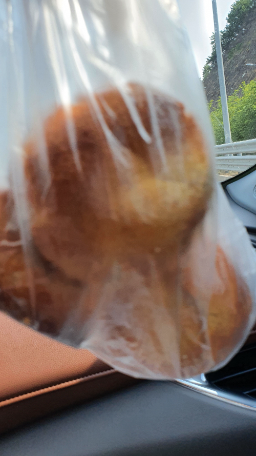 빵의 종류가 다양하여 어떤 빵을 골라야 할지 잠시 고민되더라고요. 이것저것 둘러보다 그중에서 몇 개를 선택! 포장한 뒤 이동하는 차 안에서 먹어봤어요.