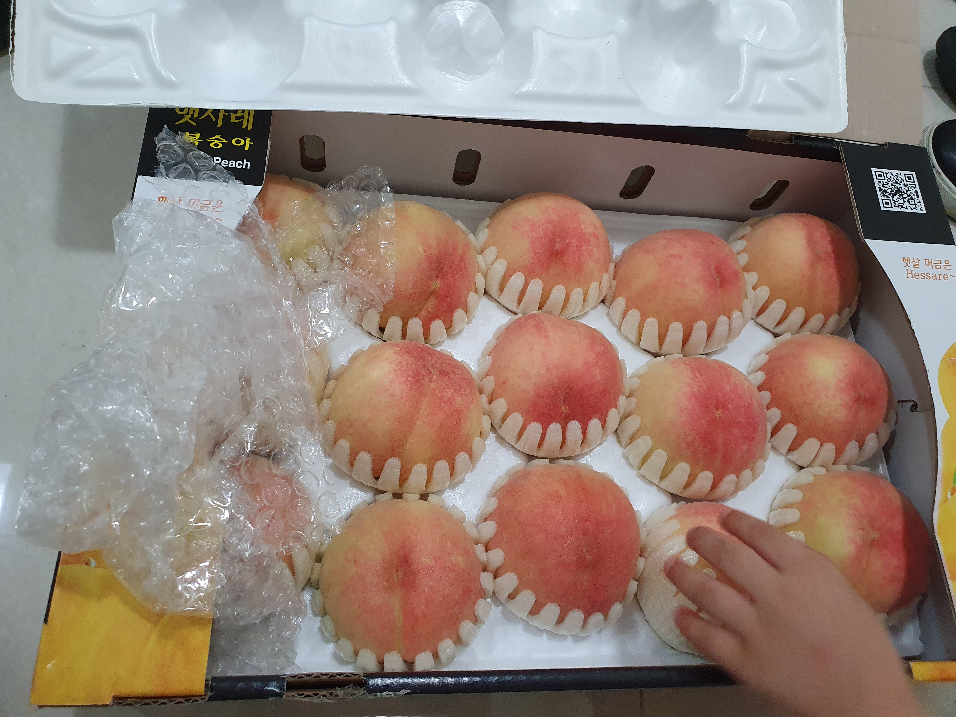 선물로 받은 복숭아! 특상품이라서 그런지 색깔로 예쁘고 향도 진하고 상태가 너무 좋았어요. 받자마자아이가 먹겠다고 손이 먼저 가네요! 그런데, 복숭아는 털이 있기 때문에 아이가 만지는 거 조심해야 해요.맛은 정말 달콤 그 차체! 일단, 어떻게 하면 오래 보관해서 맛있게 먹을 수 있는지 보관법 알려드릴게요.