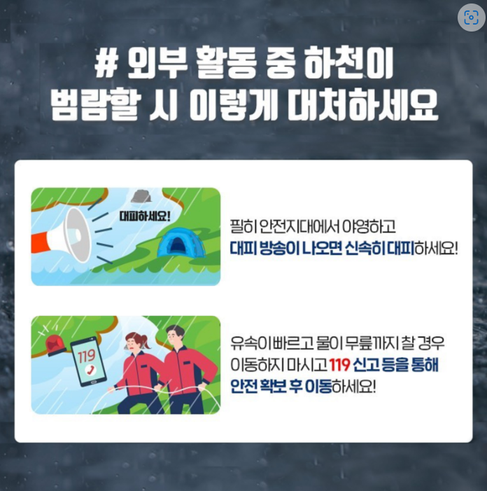 1. 계단 침수 시, 집이나 건물 침수 시, 하천 범람 시 대처방법