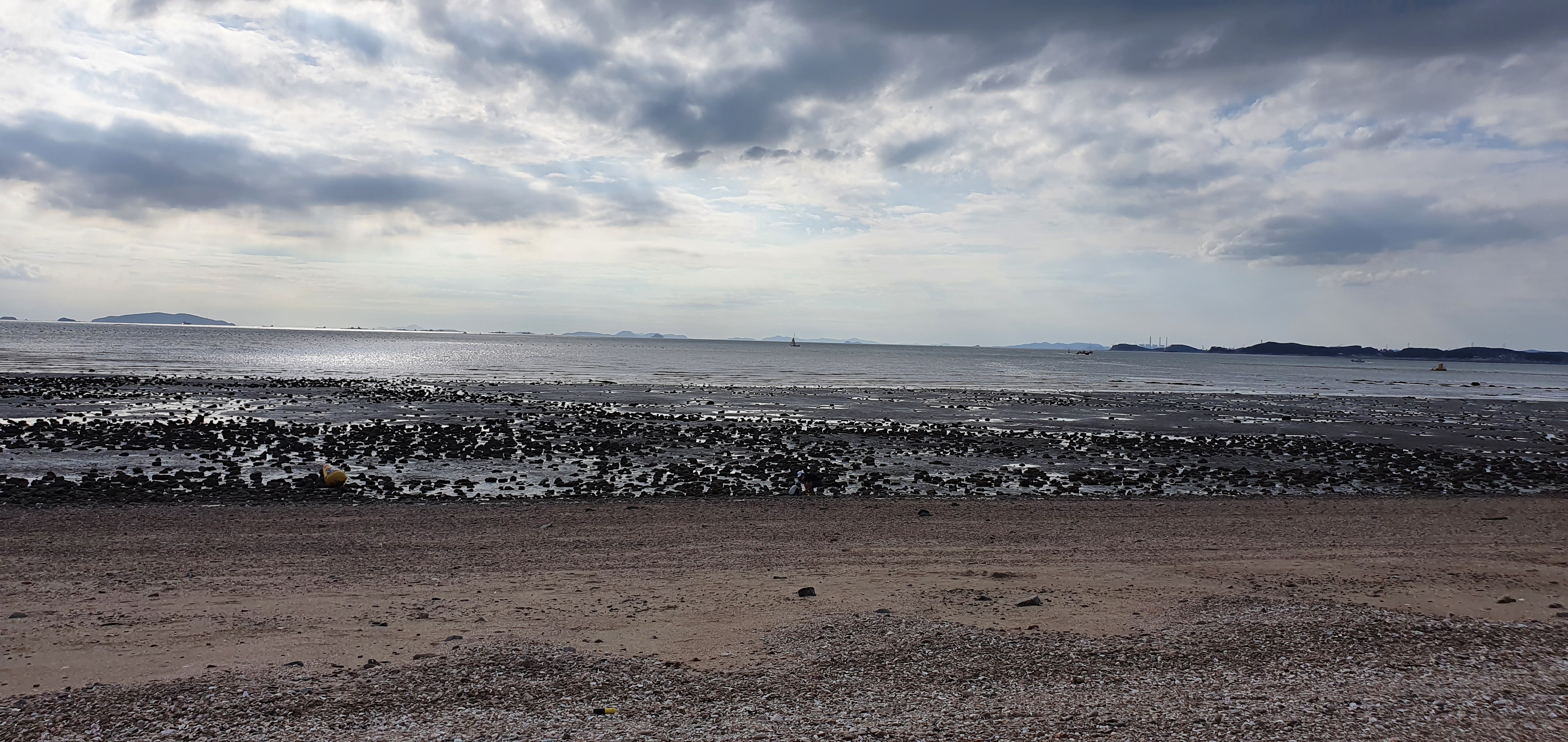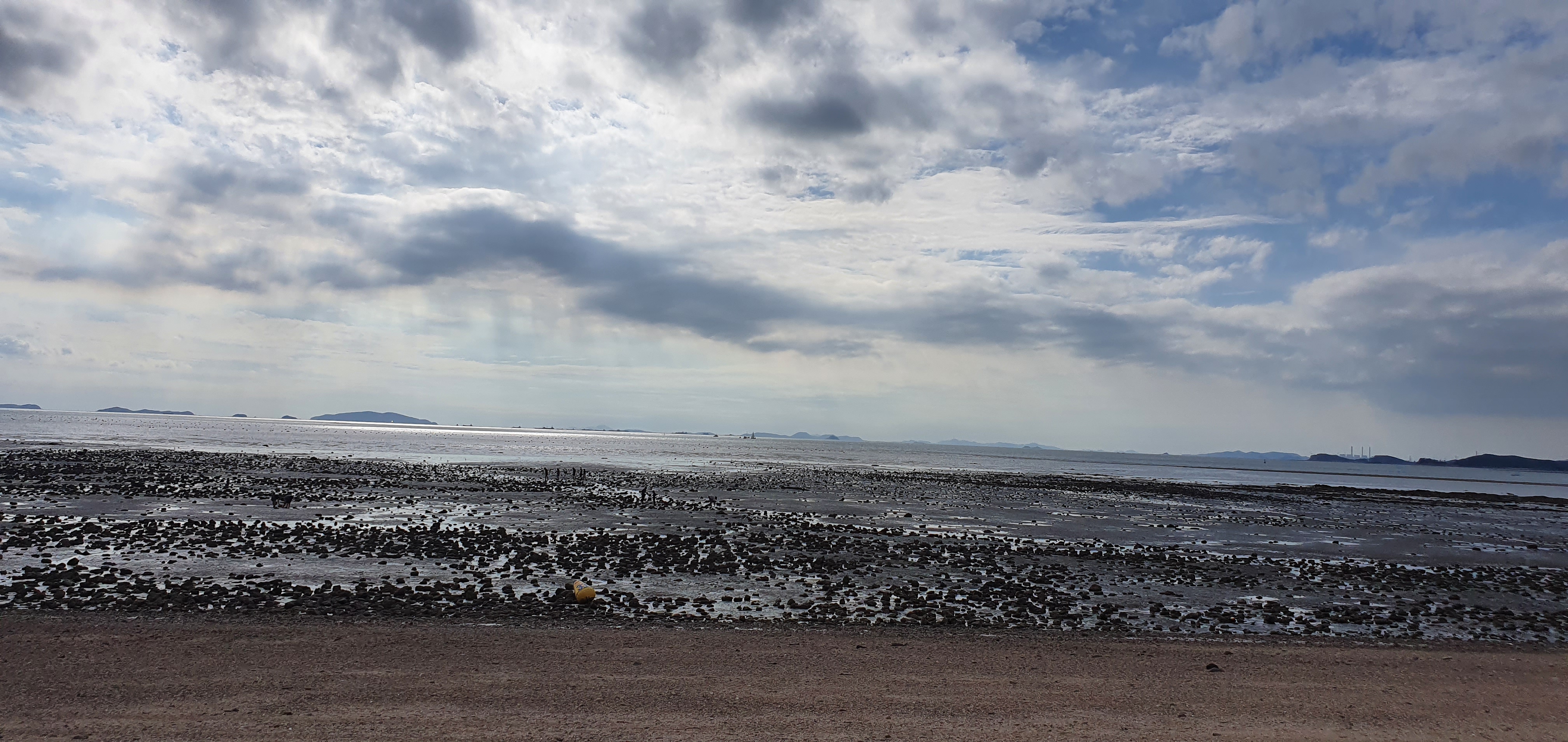 선선한 바람이 부는 가을, 제부도 해수욕장 모습이에요. 저희가 갔던 날은 구름이 껴서 처음에는 뭔가 운치 있는 분위기였는데, 점차 구름이 지나가고 맑고 파란 하늘이 보였어요. 간조 때라서 드넓은 갯벌이...