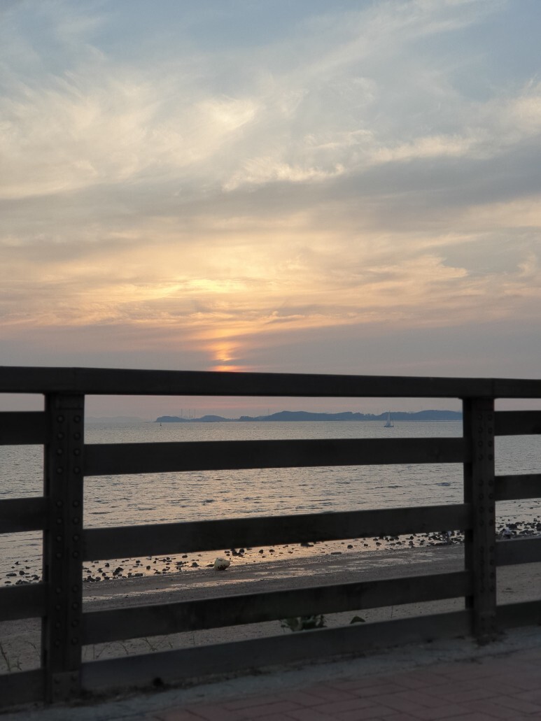 바다 너머 노을이 온 세상을 황금빛으로 물들이는 모습을 보니 힐링의 시간이었네요.