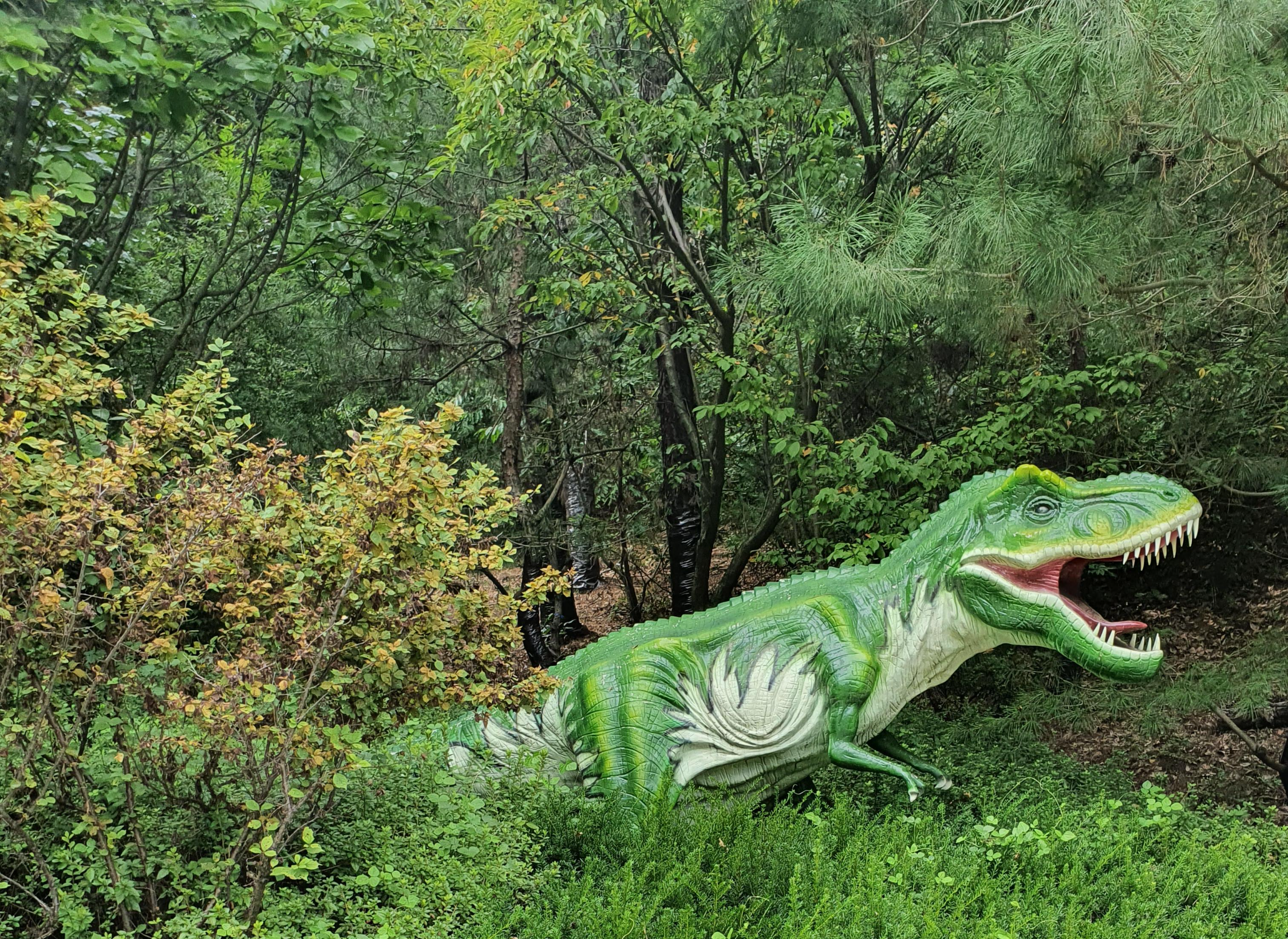 덕평 공룡수목원에서 보유한 움직이는 공룡 모형은 총 25여 종이예요. 공룡알에서 티라노사우르스까지 최대 길이가 10미터이고, 높이는 4미터 정도까지 다양하게 구성되어 있어요. 공룡이 움직이면서 소리를 내는 모습이 아이들의 오감을 자극하면서도 호기심을 불러일으켜요. 울음소리나 움직임에 놀라서 우는 아주 어린 아기도 있었지만, 대부분의 아이들은 신기해하며 즐겁게 관람하더라고요. 두꺼운 머리를 가진 도마뱀이라는 뜻의 파키케팔로사우르스와 머리에 세 개의 뿔과 넓은 프릴을 가진 트리케라톱스도 보이고, 움직이는 아기 티라노사우르스가 알을 깨고 나오는 모형도 관람할 수 있어요.