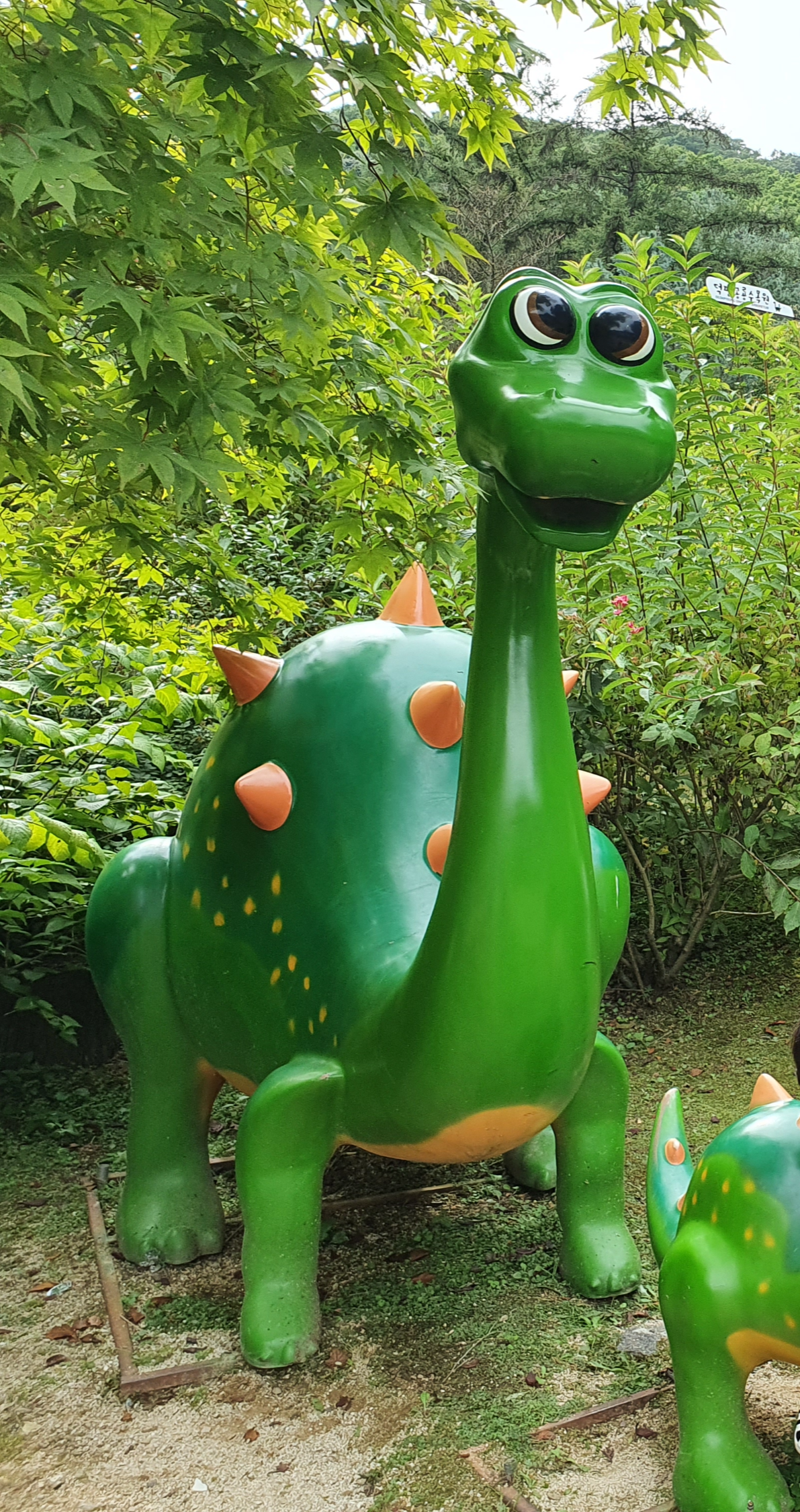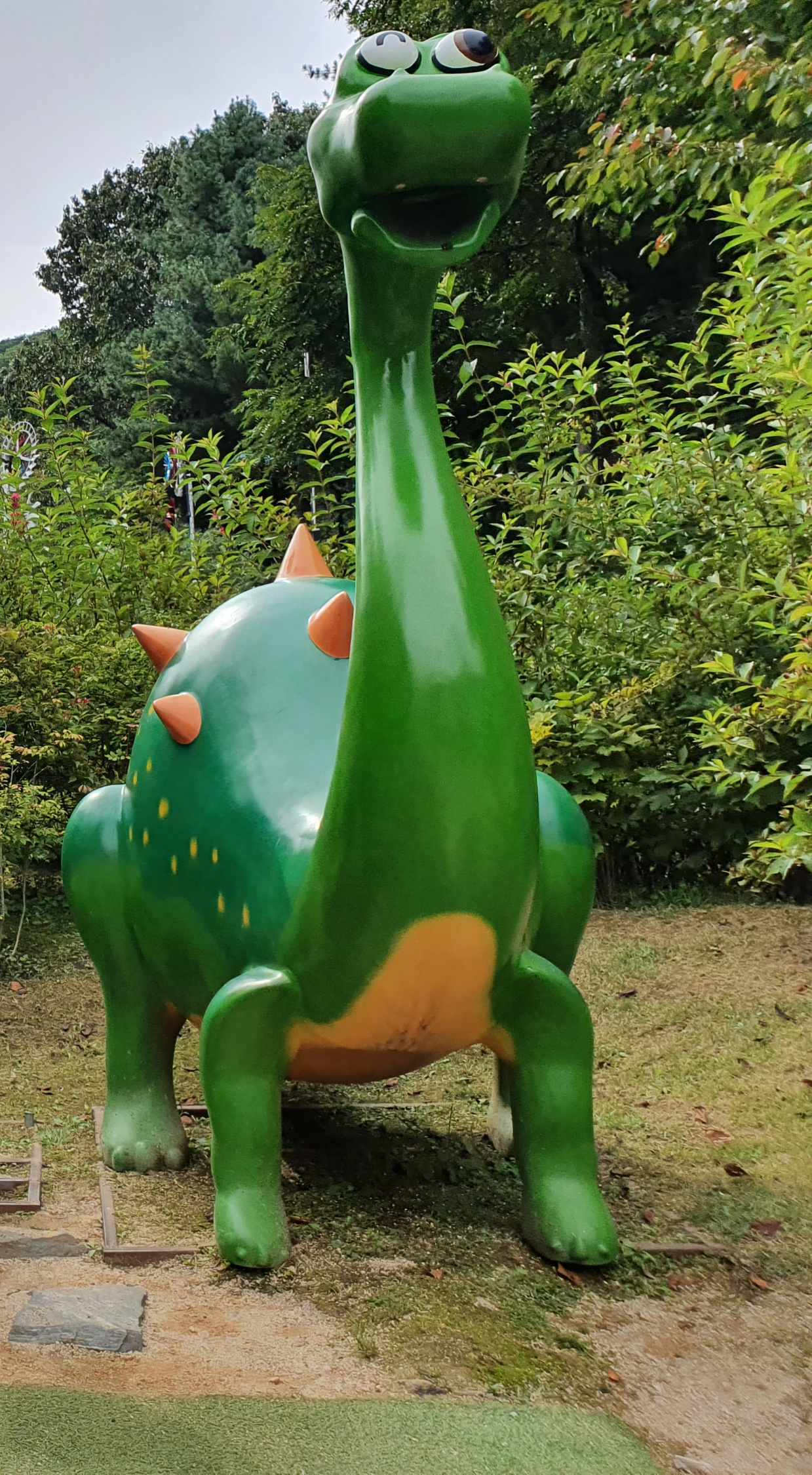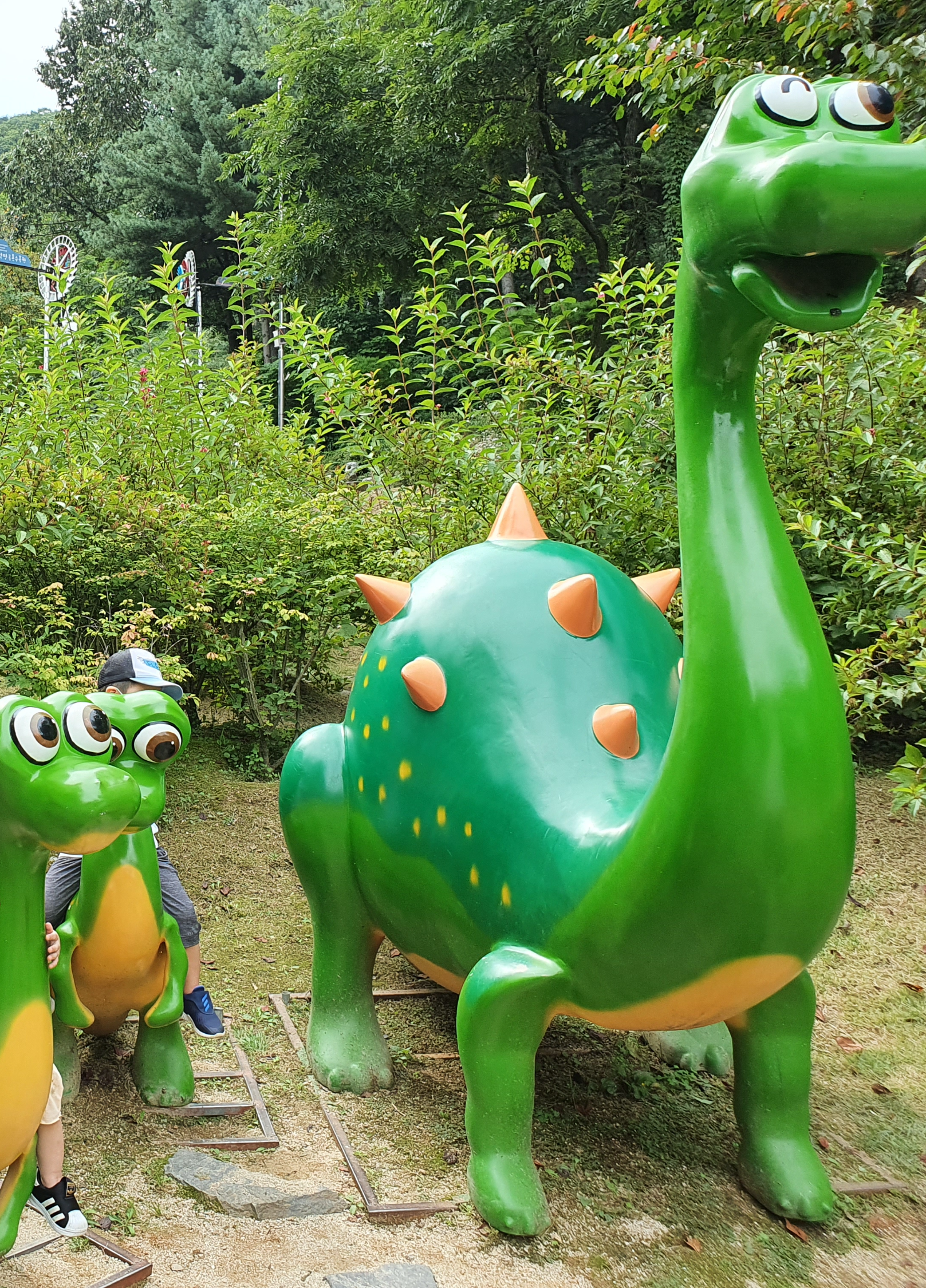 아프리카 조각공원을 지나서 귀여운 가족 공룡 모형들도 있어요. 이곳을 지나가는 아이들 모두 공룡 모형 뒤에 한 번씩 타보고 즐거워하며 사진 찍더라고요. 포토존이에요.