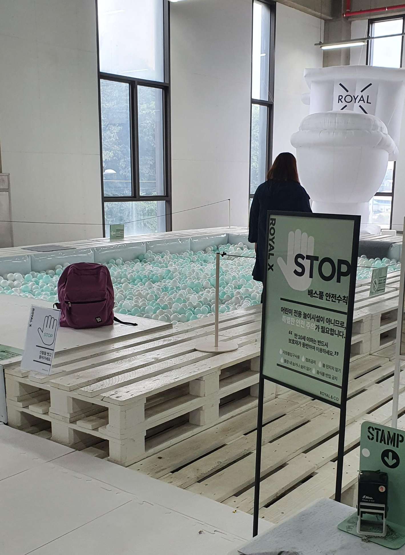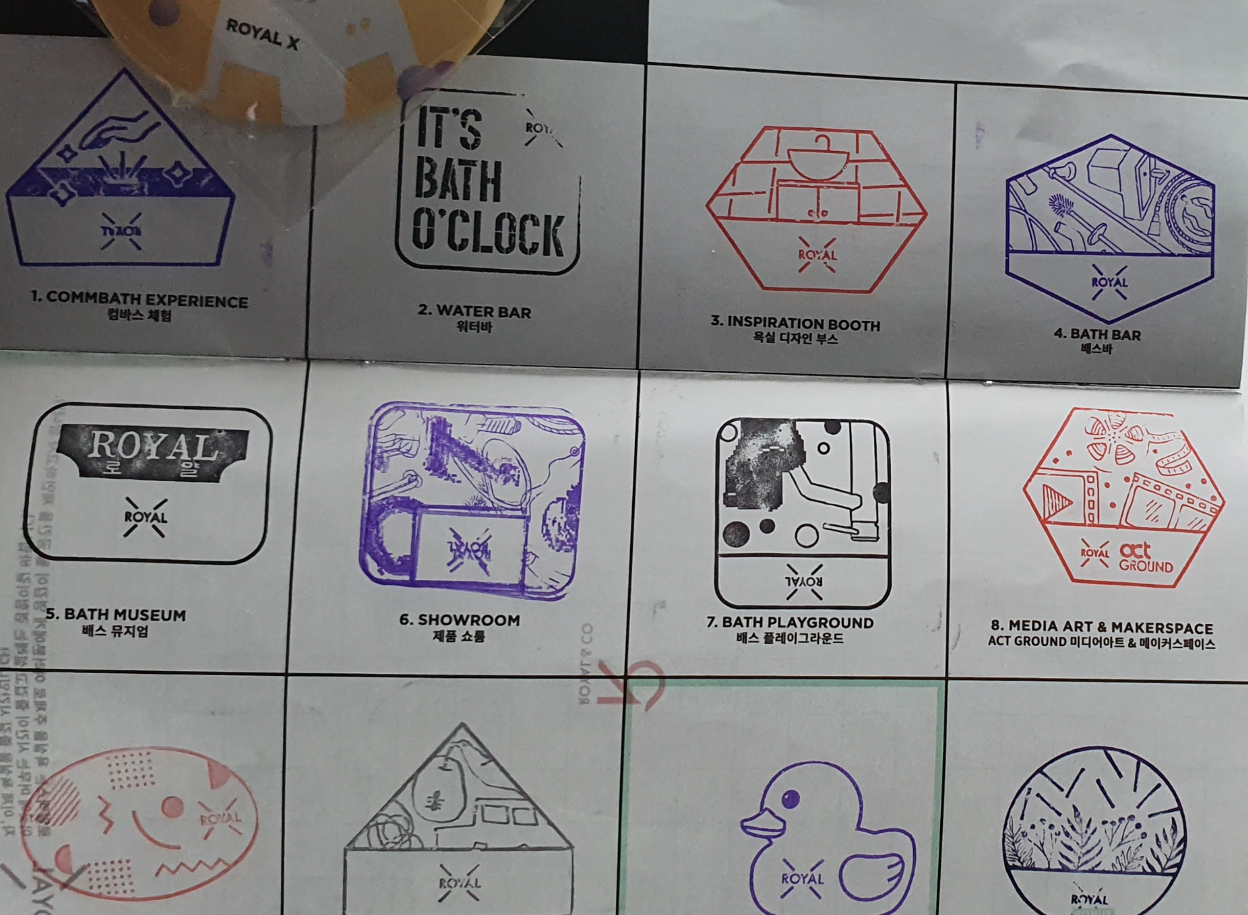 로얄엑스 플래그쉽에서는 욕실 이색 전시도 감상할 수 있는데 입구에 맵 가이트 북의 스탬프를 모두 모으면 손거울 선물을 받을 수 있었어요. 곳곳에 스탬프 찍는 곳이 있어요.