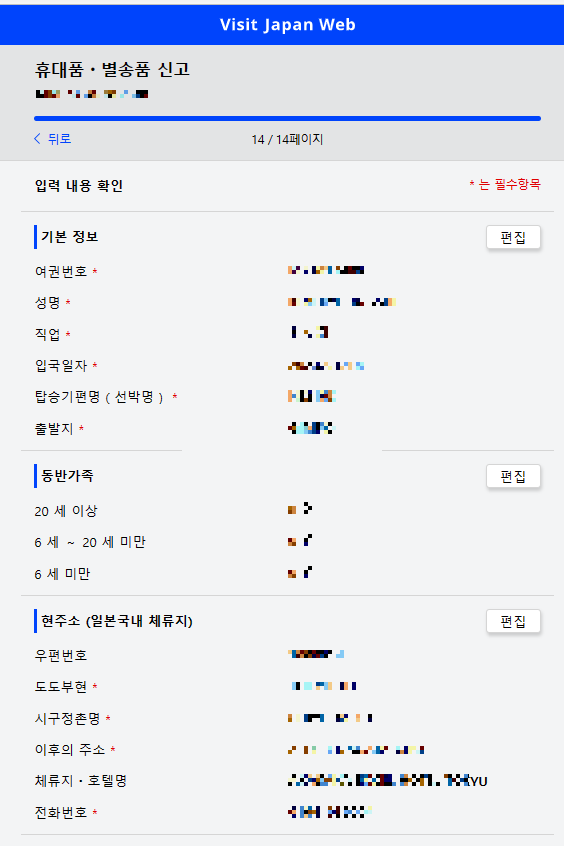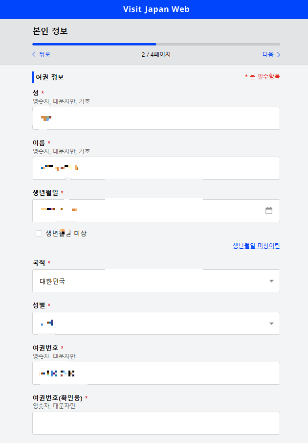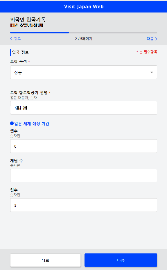 - 위의 "일본 체재 예정 기간"은 2박 3일이라 3일만 입력함.