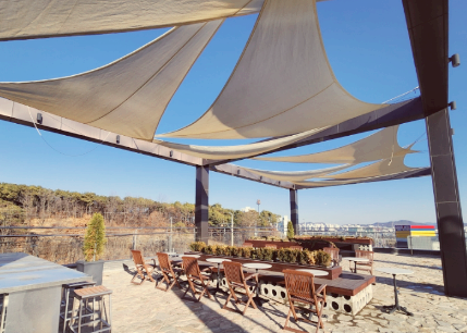 3층 루프탑은 탁 트인 주변 감상하기에 좋아서 날씨가 선선할 때 이용하면 정말 좋을 것 같아요. 많은 인원이 찾았을 때 즐기기에도 좋을 것 같다는 생각을 했네요.
