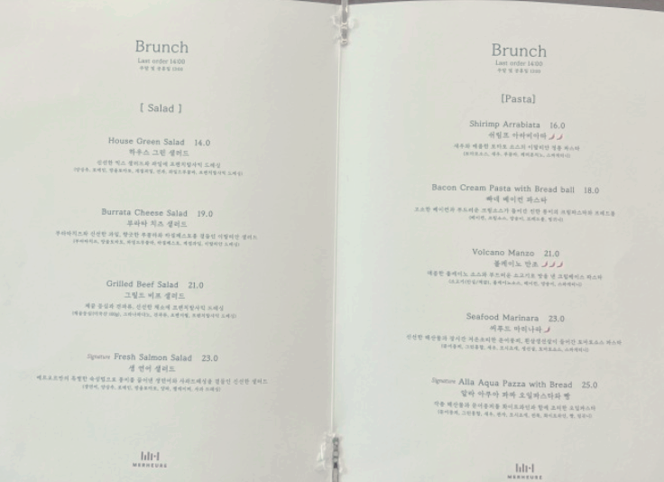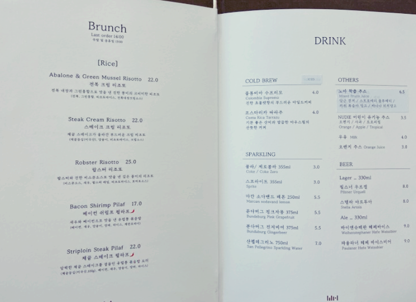2F 브런치 주중 10:00 ~ 14:00 / 주말 ~ 13:00
