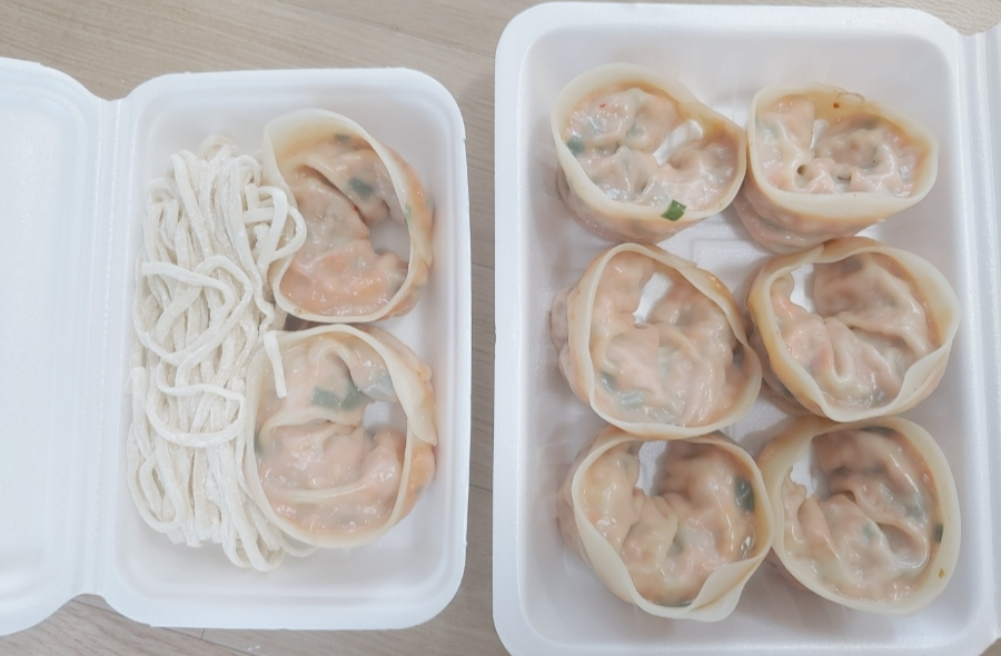 포장이 가능해서 많은 분들이 포장주문 하더라고요. 만두전골이 포장되어 냉장고에 보관되어 있어서 주문 후 바로 갖고 올 수 있었어요. 야채, 육수, 만두와 칼국수가 각각 담겨 있어요. 만두전골은 포장주문해서 먹어도 좋은 것 같아요.