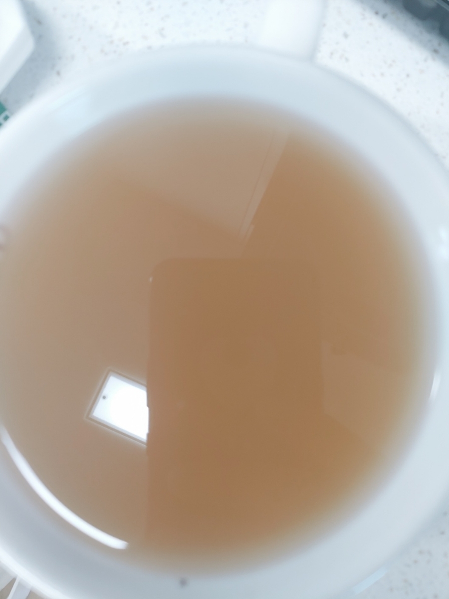속이 꽉 찬 손만두가 먹음직스러워 보여요. 만두는 모두 김치만두였고, 8개가 담겨 있어요. 매일 매장에서 직접 손으로 빚는다고 하네요. 육수를 비닐에 넣어주는데 그 점은 불편했어요. 비닐에 담긴 육수를 그릇에 옮겨 담아봅니다. 육수가 맑고 투명해요.