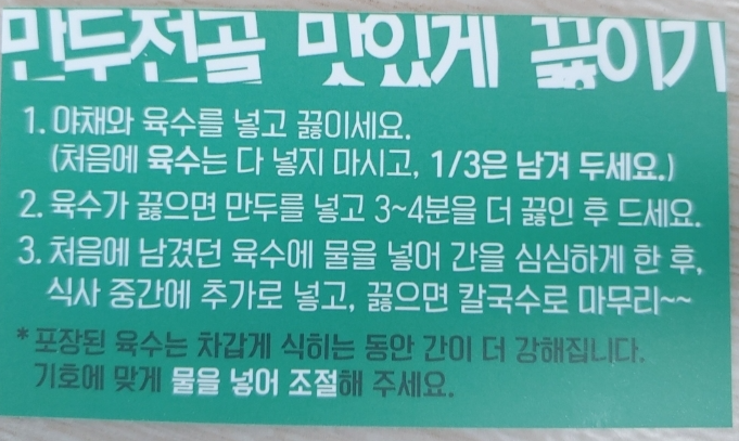 만두가 터져서 국물 색이 조금 진해졌어요. 만두전골을 먼저 맛있게 먹고 이후에 남겨 둔 육수와 집에 있는 야채, 칼국수를 넣고 또 먹었는데 맛있게 먹었어요. 칼국수를 넣으니 국물이 되직하게 되더라고요. 그래도 얼큰하게 맛있게 잘 먹었어요.