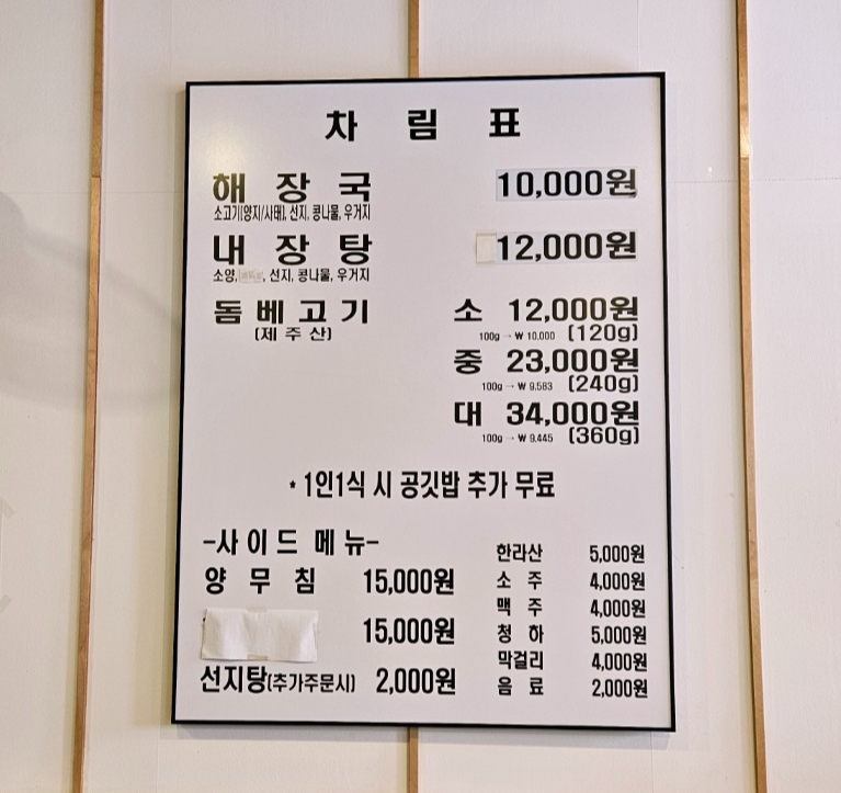 은희네 해장국 메뉴