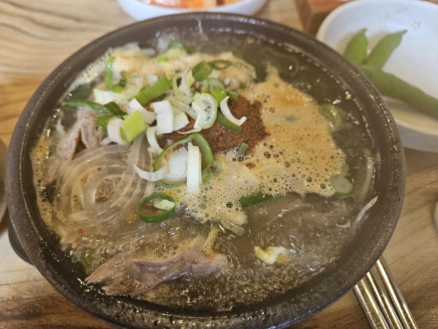 은희네 해장국의 대표 메뉴인 해장국이 나오기 전에 돔베고기가 먼저 나와서 사진으로 담아봤어요. 돔베고기는 고기냄새가 전혀 나지 않았고, 아주 부드러웠고 맛있었어요. 단, 한 가지 아쉽다면 양이 많지는 않았어요.