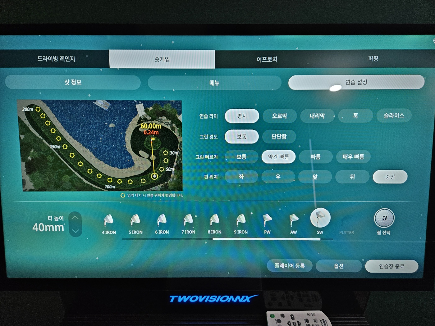 골프존 nx 연습장에서 연습을 한 후기는 기존과 다르게 트랙맨처럼 다양한 샷 분석이 가능해서 좋았습니다. 골프존 nx는 맞춤형 연습기능을 탑재한 바닥 스크린까지 연결된 드라이빙레인지, 다양한 각도에서 그린공략 가능한 숏게임, 러프/버커를 구현한 어프로치, 자유롭게 거리 및 환경 세팅하여 연습할 수 있는 퍼팅 등 4가지 모드가 있었습니다. 특히 숏게임과 어프로치에 연습라이, 그린경도, 빠르기, 핀위치 세팅이 가능해서 좀 더 다양한 상황에서 리얼하게 연습할 수 있었습니다. 또한, 퍼팅도 다양한 환경(80여 개의 퍼팅지점 제공)에서의 연습이 가능하도록 세팅할 수 있어서 좋았습니다(바로바로 거리 조절해서 연습이 가능했음).