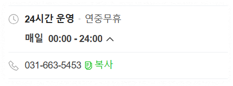 24시간 운영, 매일 00:00 ~ 24:00, 연중무휴