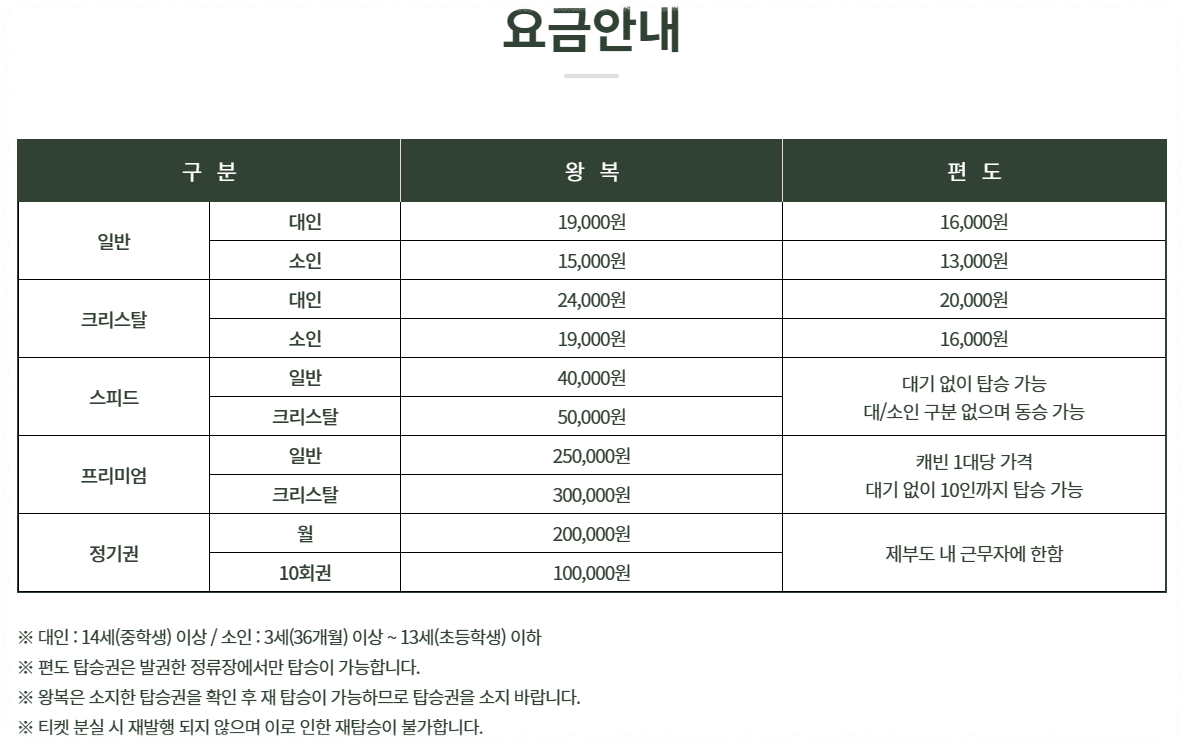 서해랑 케이블카의 이용가격은 각각 아래와 같아요.