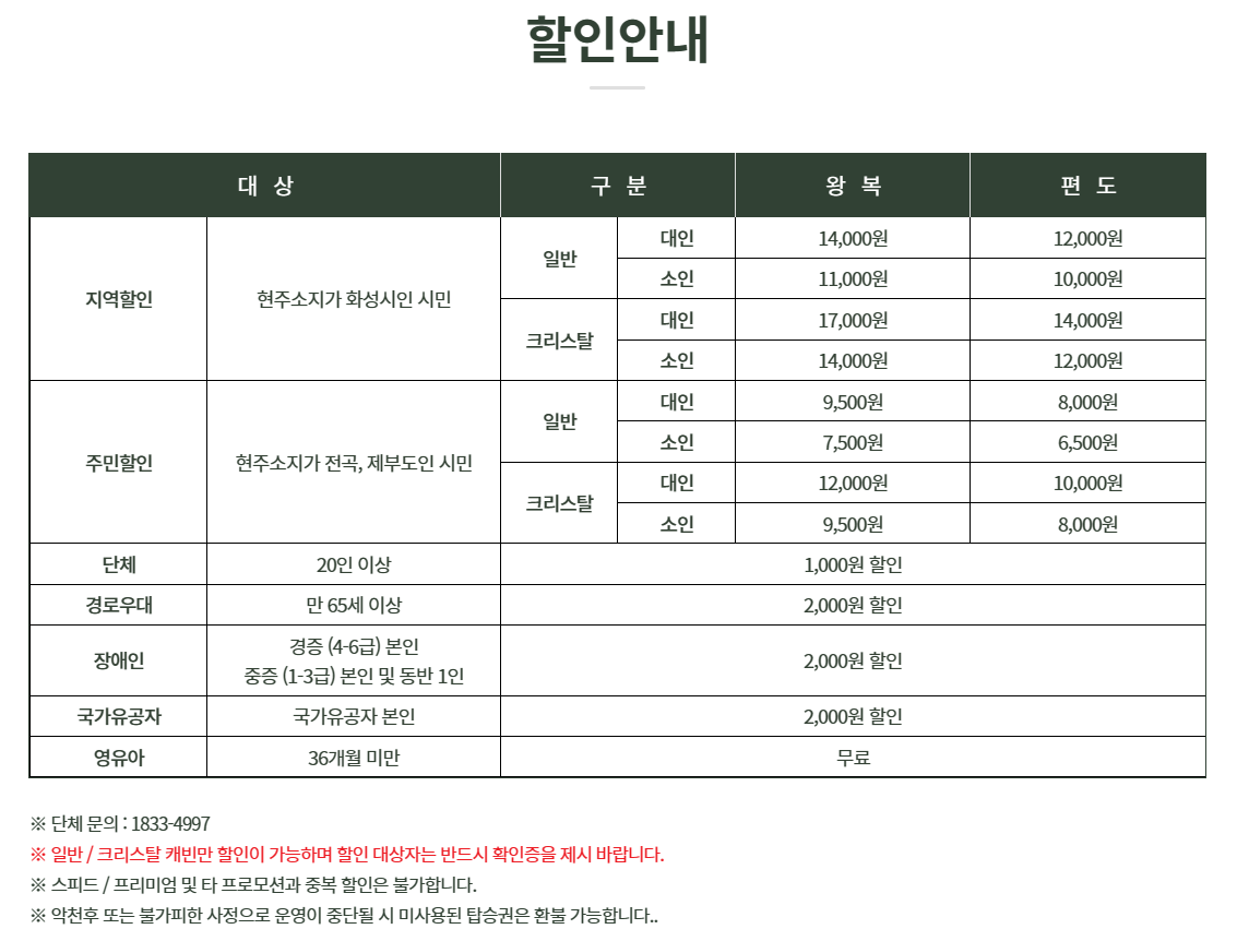 ※ 단, 탑승권 발매는 운영 마감 1시간 전까지, 탑승은 30분 전까지 가능하다고 하니 참고하세요.
