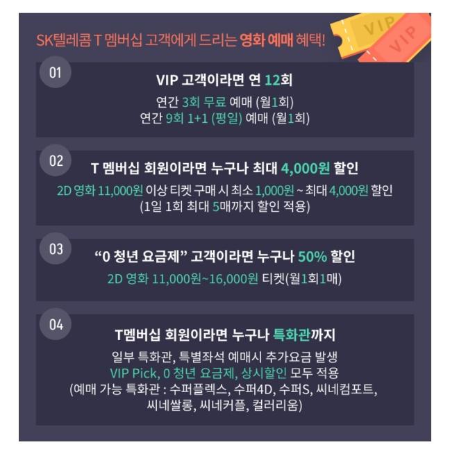 SKT 멤버쉽 - 무료 영화 예매(VIP 등급)