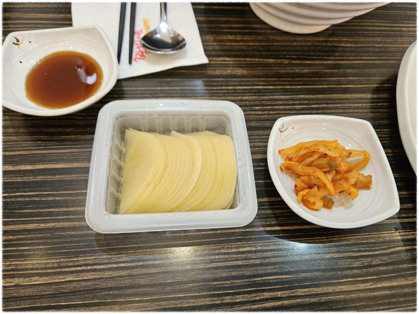 오산 맛집 오산 짬뽕지존은 짬뽕지존 특유의 단무지와 자차이, 생수가 제공되고, 물티슈와 수저는 테이블옆에 기본적으로 구비되어 있어요. 아래의 사진과 같이 셀프바에는 언제든지 더 가져다 먹을 수 있게 단무지, 자차이, 생수병들이 많이 있으니 참고하세요(공깃밥도 무료로 제공함).
