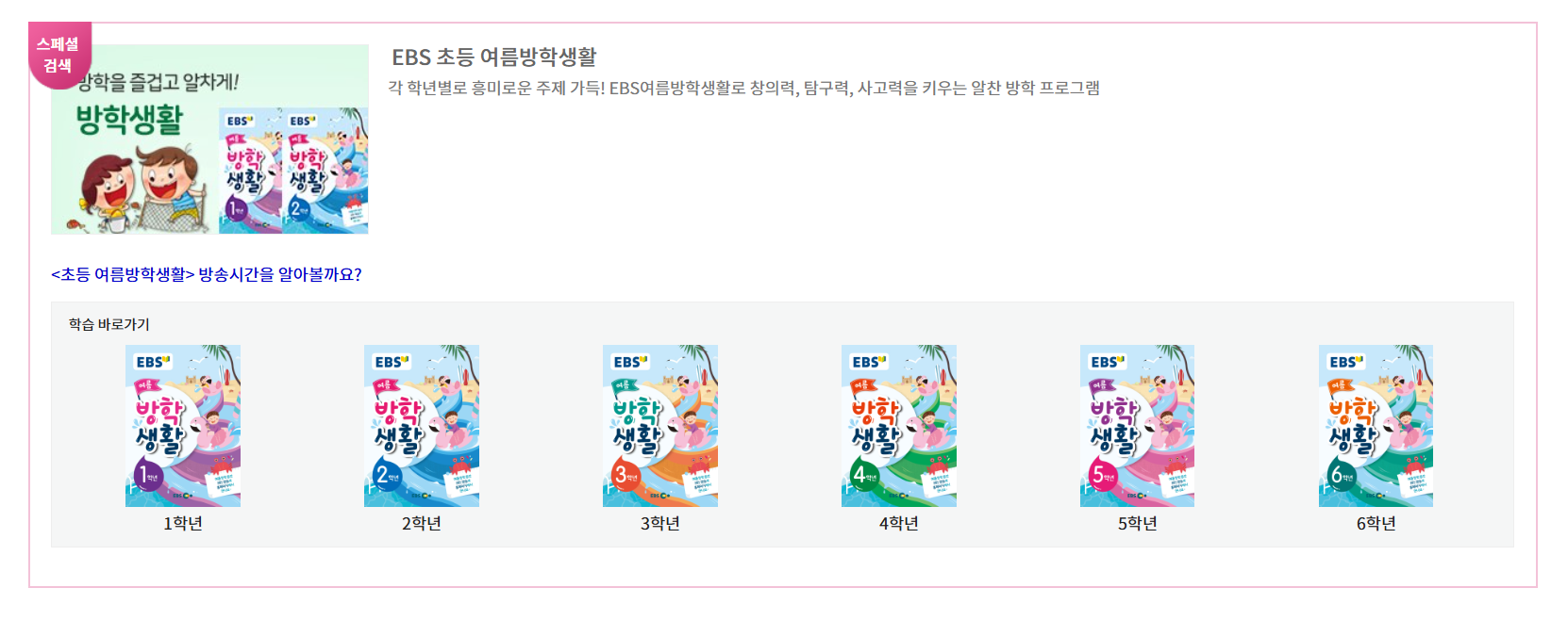 ebs 초등 여름방학생활 -1학년 교재