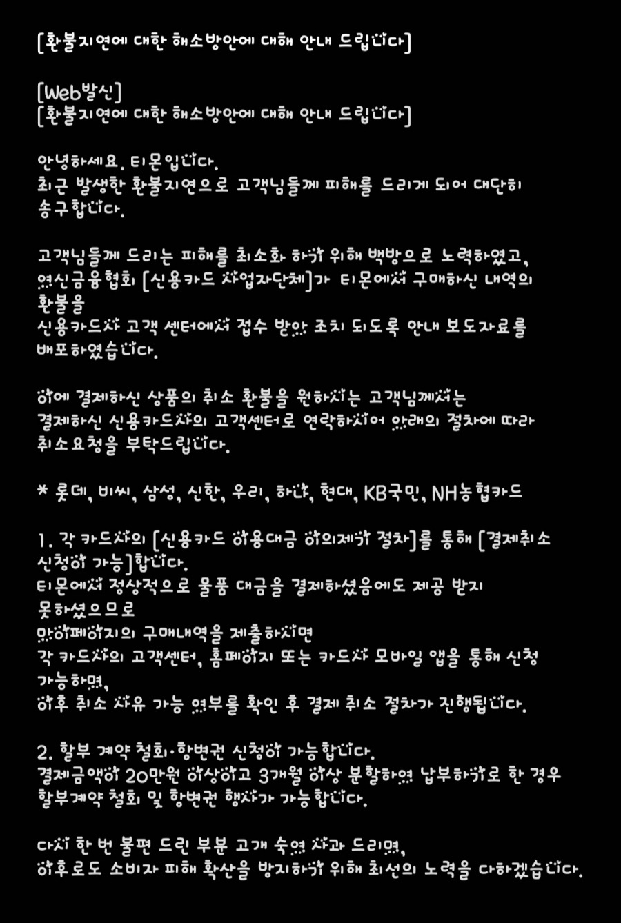 | 티몬 정산지연, 티몬 계좌환불대기 (1) | 2024.07.24 |